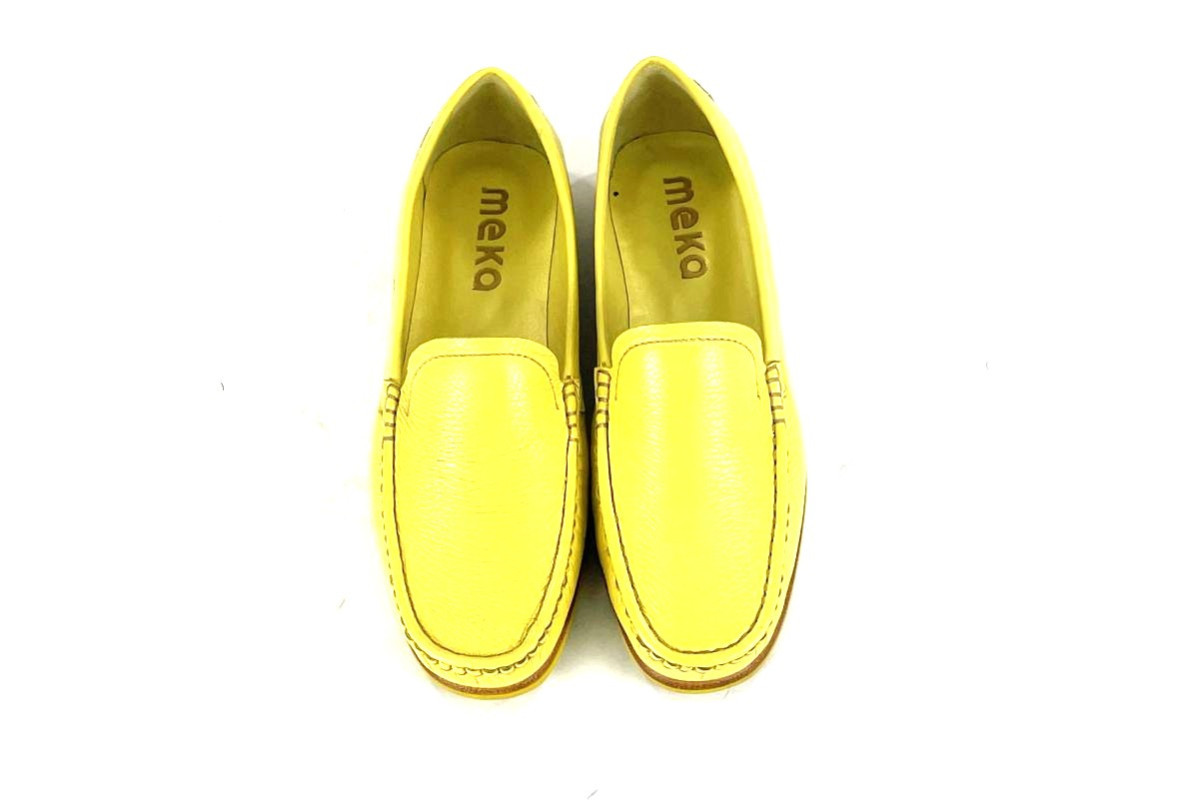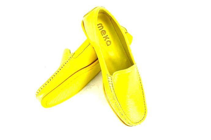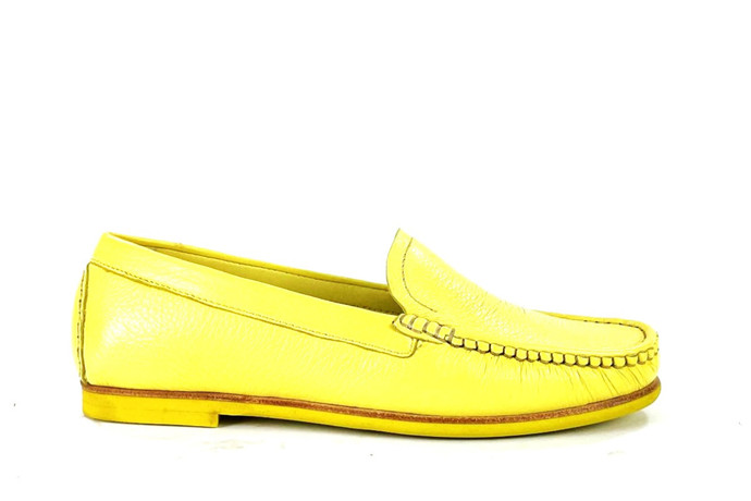 Skóra naturalna cielęca / naturalna skóra z jelenia, kolor: żółty, podeszwa z wysokogatunowej mikrogumy, podszewka ze skóry koziej.