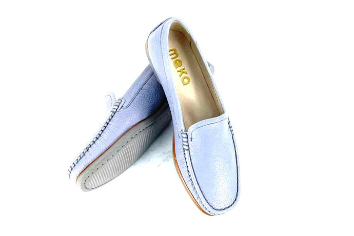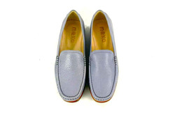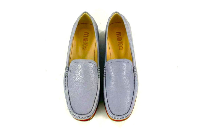 Skóra naturalna cielęca / naturalna skóra z jelenia, kolor: niebieski, podeszwa z wysokogatunowej mikrogumy, podszewka ze skóry koziej.