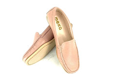 Skóra naturalna cielęca / naturalna skóra z jelenia, kolor: różowy, podeszwa z wysokogatunowej mikrogumy, podszewka ze skóry koziej.