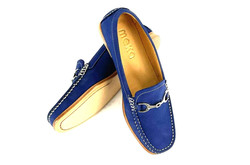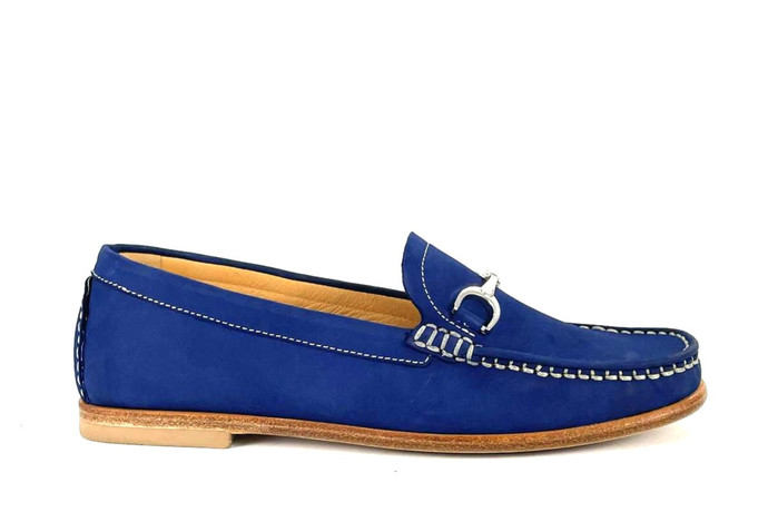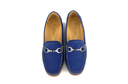 Skóra naturalna nubukowa, kolor: niebieski, podeszwa naturalna skórzana, podszewka ze skóry koziej.