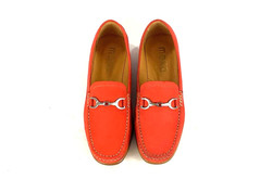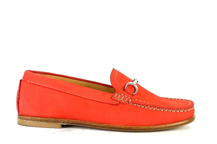 Skóra naturalna nubukowa, kolor: pomarańczowy, podeszwa naturalna skórzana, podszewka ze skóry koziej.