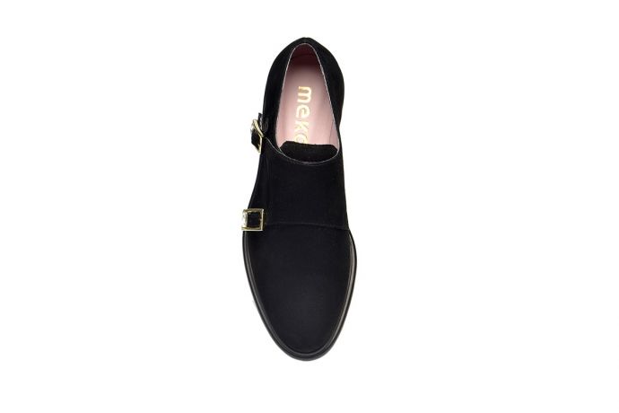 Zapinane na dwie klamry monki w kolorze czarnym to klasyczny przykład butów wizytowych. Bogato zdobione kryształkami klamry oraz przepiękny welur cielęcy pozwoliły na uzyskanie ponadczasowego designu. Niezwykle popularne wśród ludzi kochających modę śledzących trendy, ale i zachwycające nowicjuszy, którzy zaczynają swoją przygodę z formalnym stylem. Wnętrze obuwia jest na całej powierzchni podszewkowane delikatną skórą cielęcą. Ceniona przez znawców obuwia podeszwa skórzana ma właściwości oddychające, co jest niezwykle istotne w przypadku stopy, która posiada ponad sto tysięcy gruczołów potowych. Ponadto odprowadza część wilgoci na zewnątrz, dzięki czemu buty są bardzo komfortowe, a stopa nie męczy się tak szybko. Skórzana podeszwa jest dużo lżejsza od gumowej a z upływem czasu w naturalny sposób dopasowuje się do kształtu stopy.