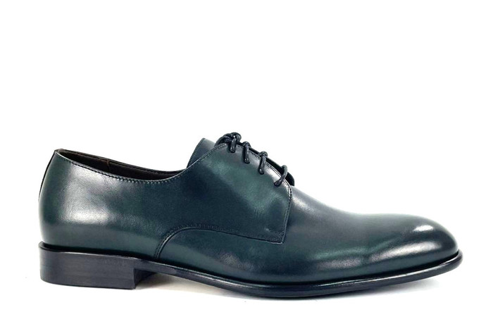 Skóra naturalna cielęca, kolor: ciemno zielony, wysokogatunkowa podeszwa gumowa, podszewka ze skóry koziej.