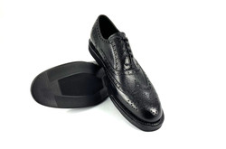 Półbuty typu oxford w kolorze czarnym charakteryzujące się tzw. zamkniętą przyszwą.Idealna stylizacja na mniej uroczyste okazje ze względu na mniej formalny styl. Użyta podeszwa jest ultralekka,podpodeszwa skórzana dopasowuje się do spodniej części stopy.Półbuty dopracowane są w każdym szczególe dzięki temu zapewniają wysoki komfort użytkowania.