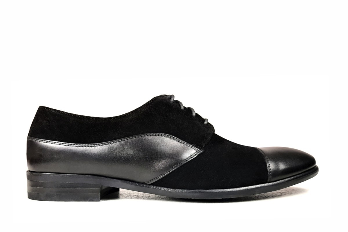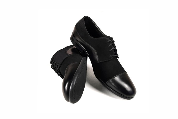 Skóra naturalna cielęca / naturalna skóra welurowa , kolor: czarny, podeszwa z wysokogatunowej mikrogumy, podszewka ze skóry koziej.