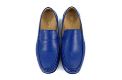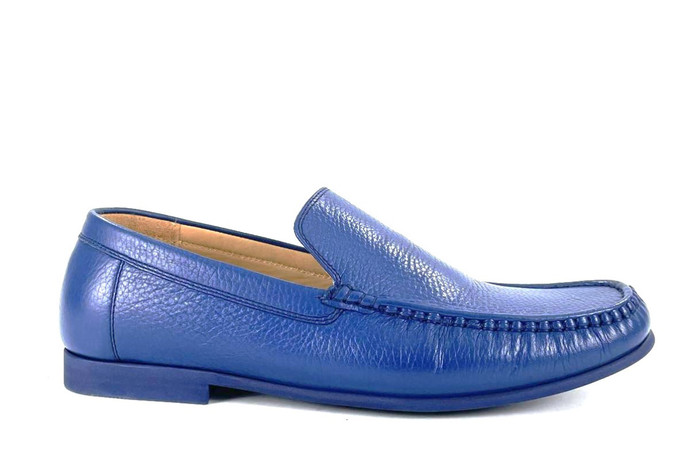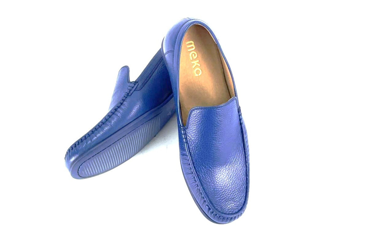 Skóra naturalna cielęca / naturalna skóra z jelenia, kolor: niebieski, podeszwa z wysokogatunowej mikrogumy, podszewka ze skóry koziej.