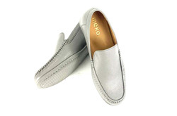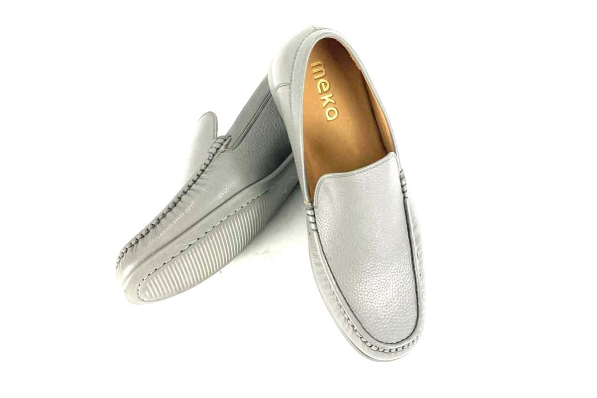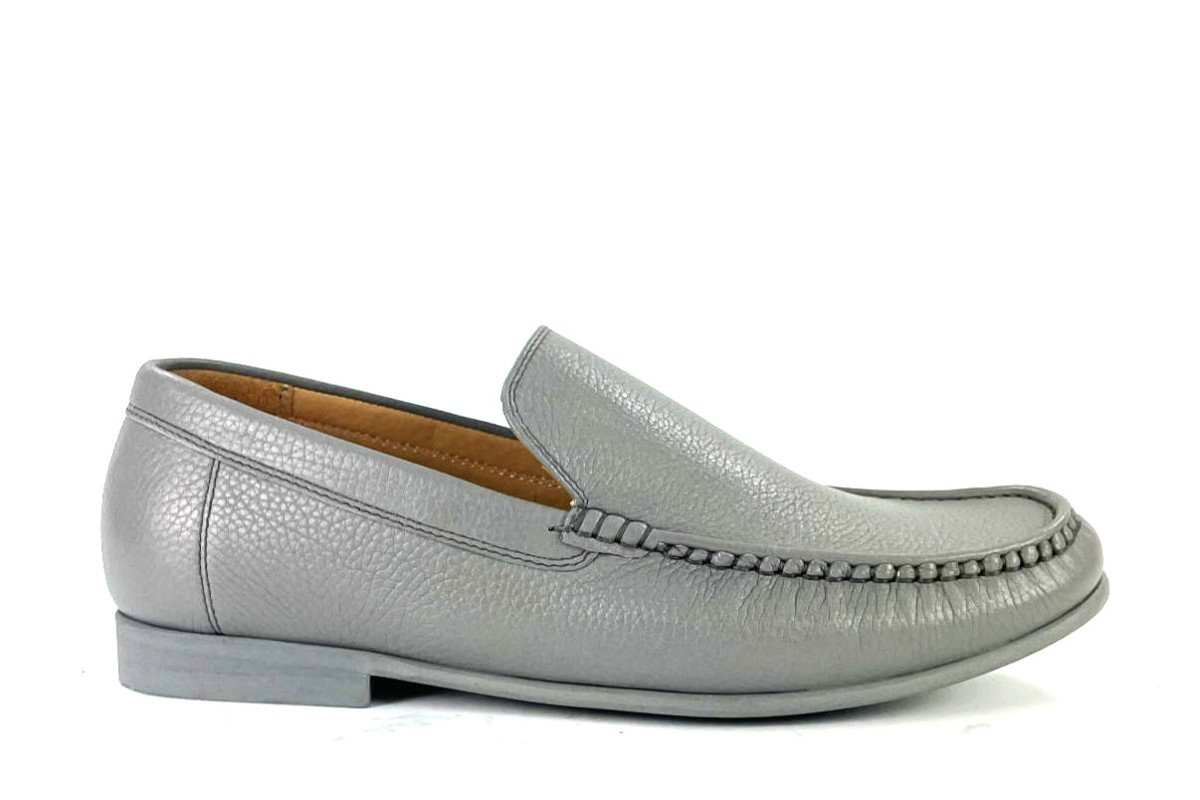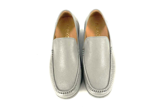 Skóra naturalna cielęca / naturalna skóra z jelenia, kolor: popiel, podeszwa z wysokogatunowej mikrogumy, podszewka ze skóry koziej.