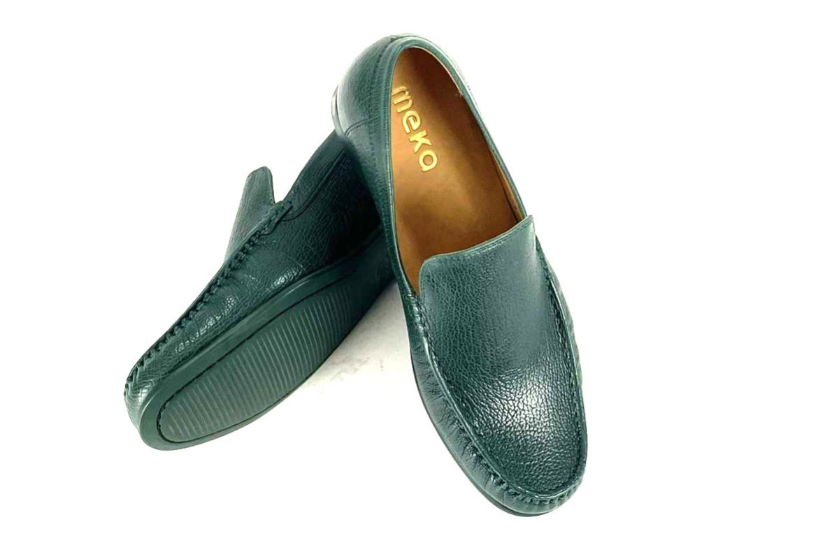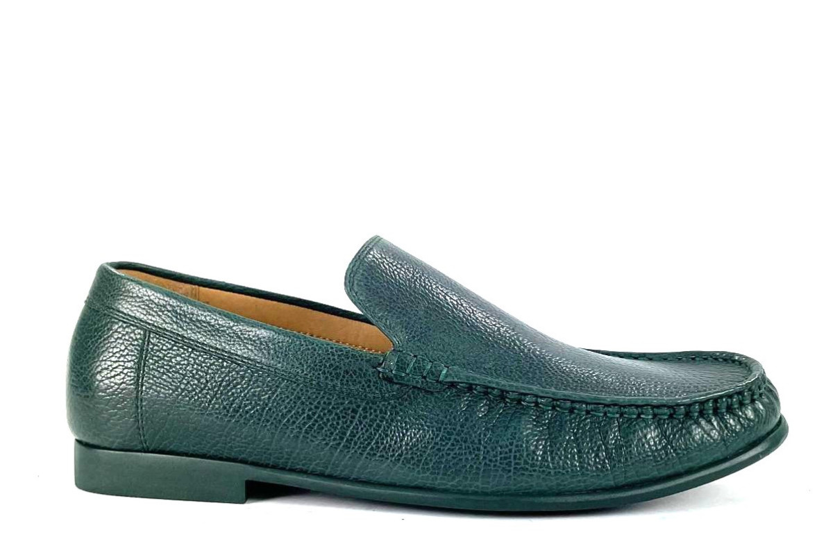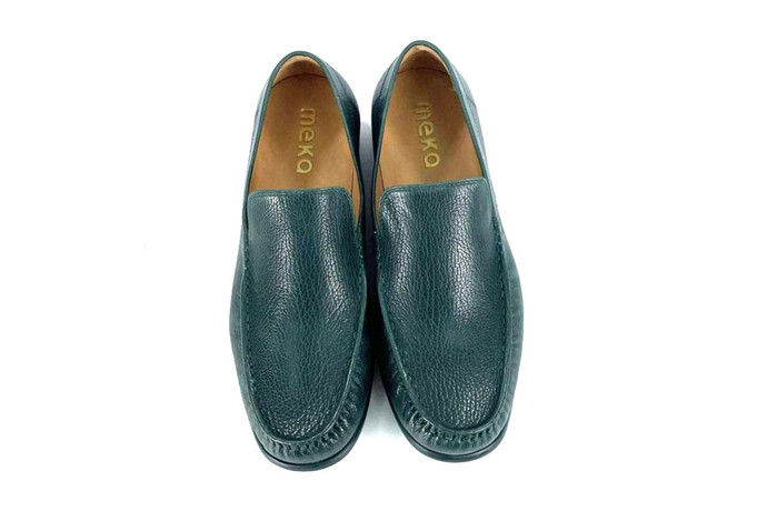 Skóra naturalna kozia, kolor: ciemno zielony, wysokogatunkowa podeszwa gumowa, podszewka ze skóry koziej.