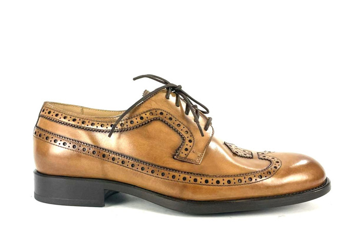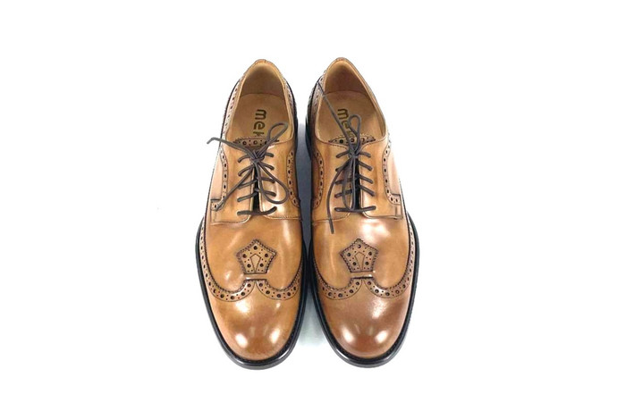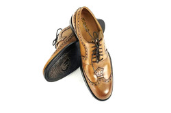 Skóra naturalna cielęca, kolor: średni brąz, wysokogatunkowa podeszwa gumowa, podszewka ze skóry koziej.