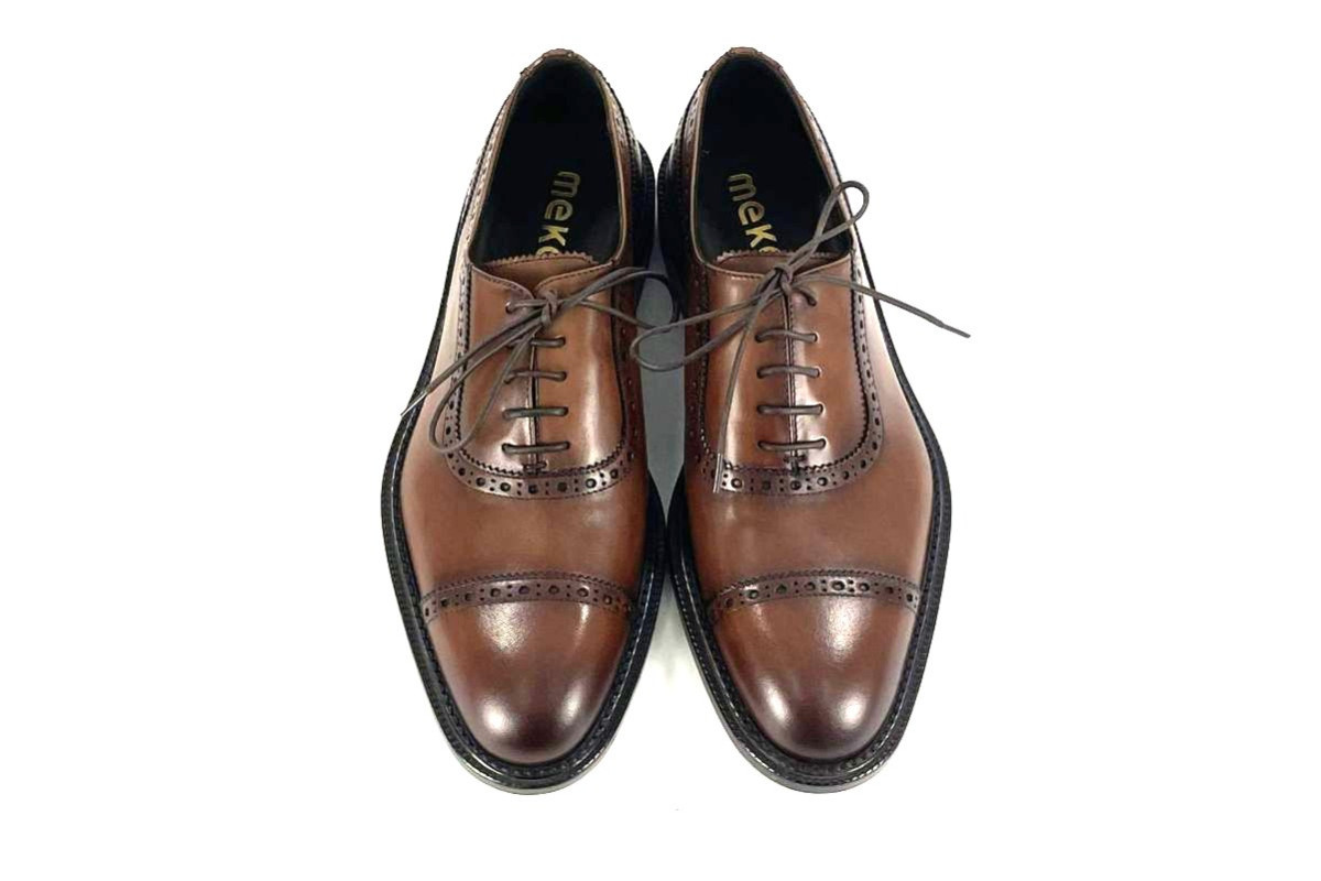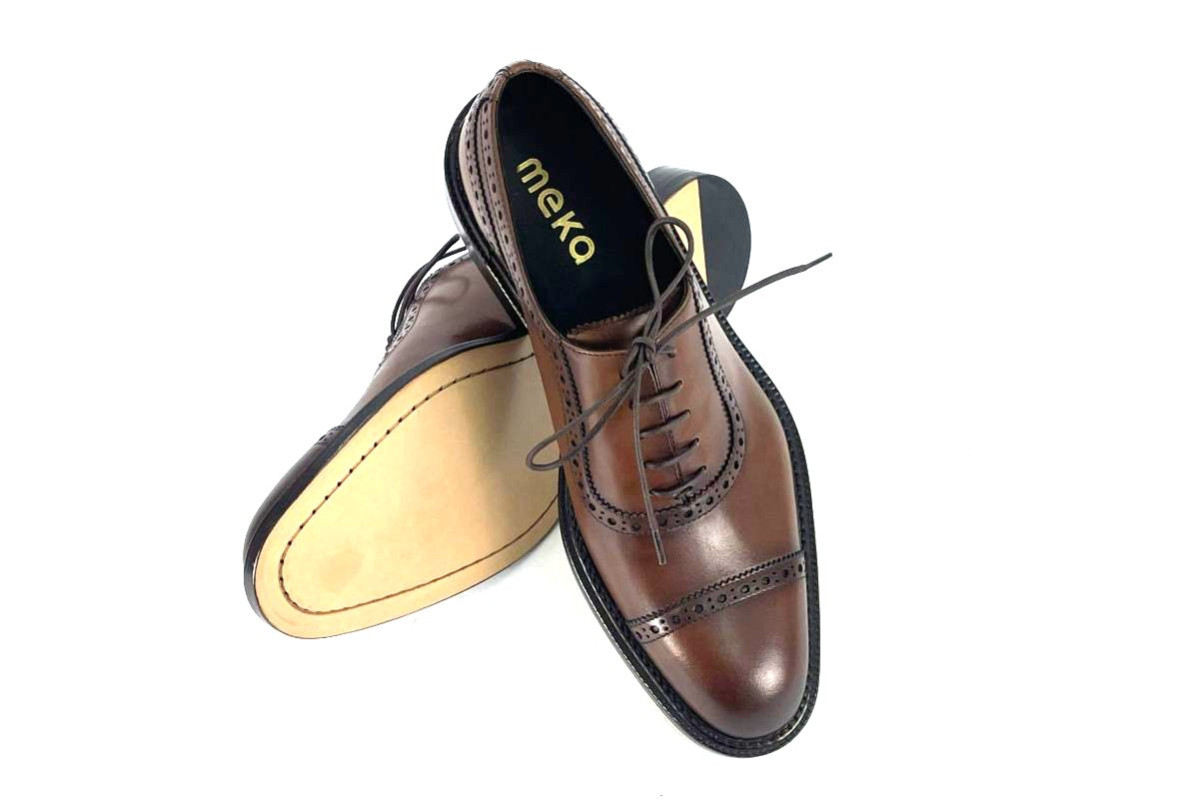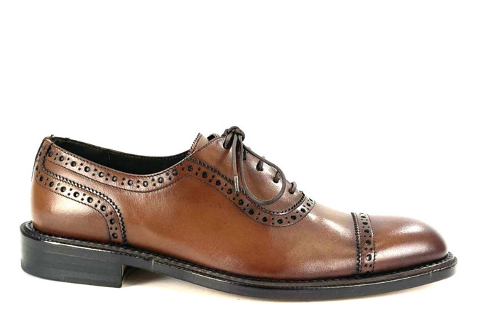Skóra naturalna cielęca, kolor: średni brąz, podeszwa naturalna skórzana, podszewka ze skóry koziej.