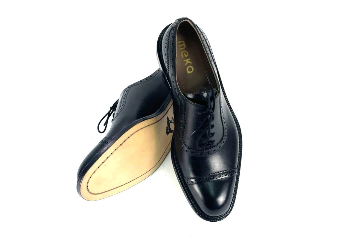 Skóra naturalna cielęca, kolor: czarny, podeszwa naturalna skórzana, podszewka ze skóry koziej.