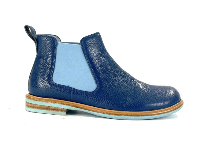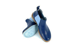 Skóra naturalna cielęca / naturalna skóra z jelenia, kolor: niebieski, podeszwa z wysokogatunowej mikrogumy, podszewka ze skóry koziej.