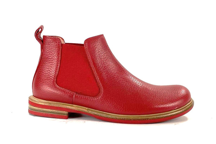 Skóra naturalna cielęca / naturalna skóra z jelenia, kolor: czerwony, podeszwa z wysokogatunowej mikrogumy, podszewka ze skóry koziej.