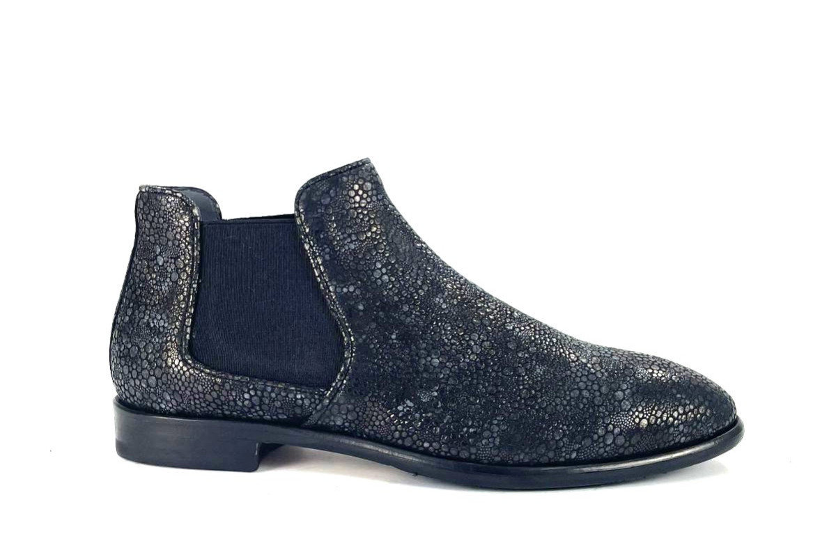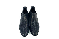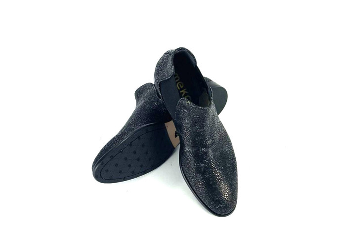 Skóra naturalna cielęca, kolor: czarno stalowy, podeszwa naturalna skórzana z gumową zelówką, podszewka ze skóry koziej.