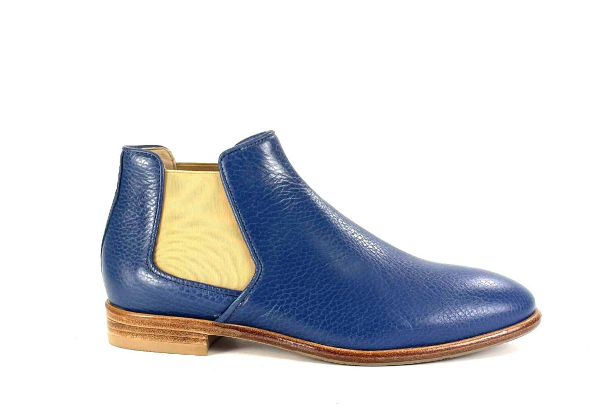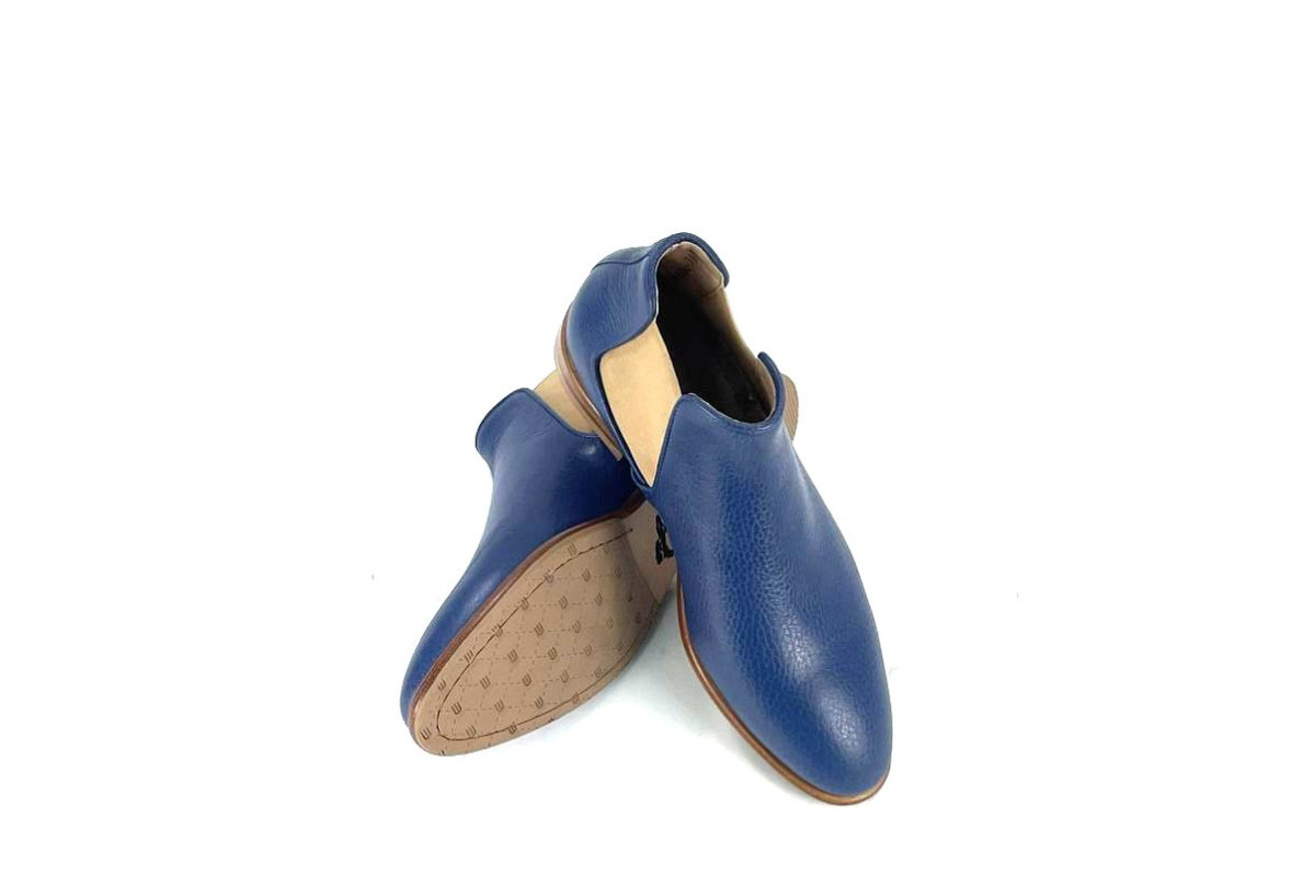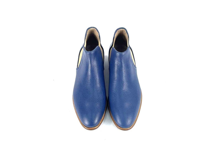 Skóra naturalna cielęca / naturalna skóra z jelenia, kolor: niebieski, podeszwa naturalna skórzana z gumową zelówką, podszewka ze skóry koziej.